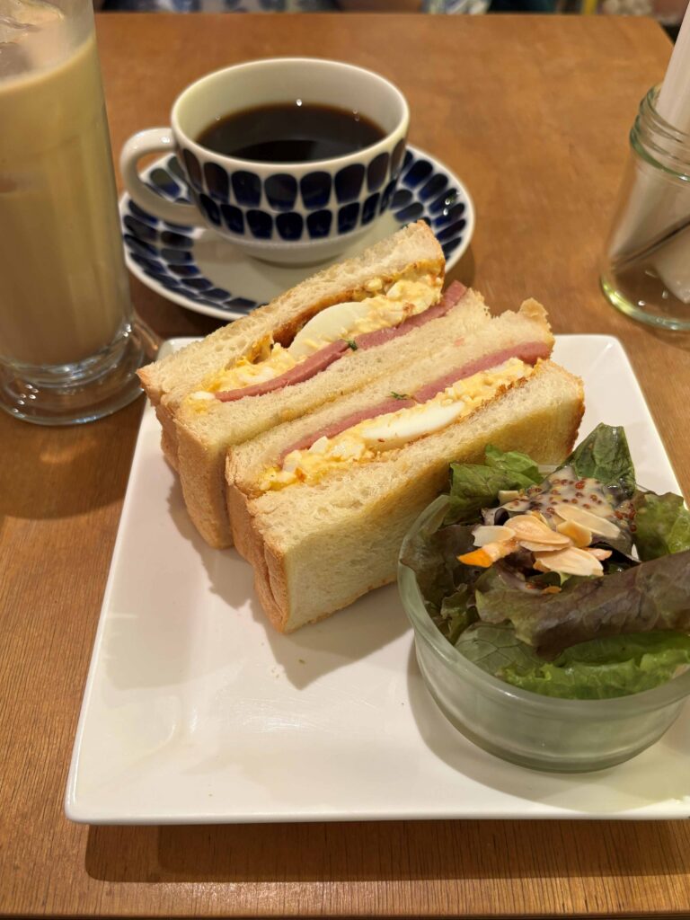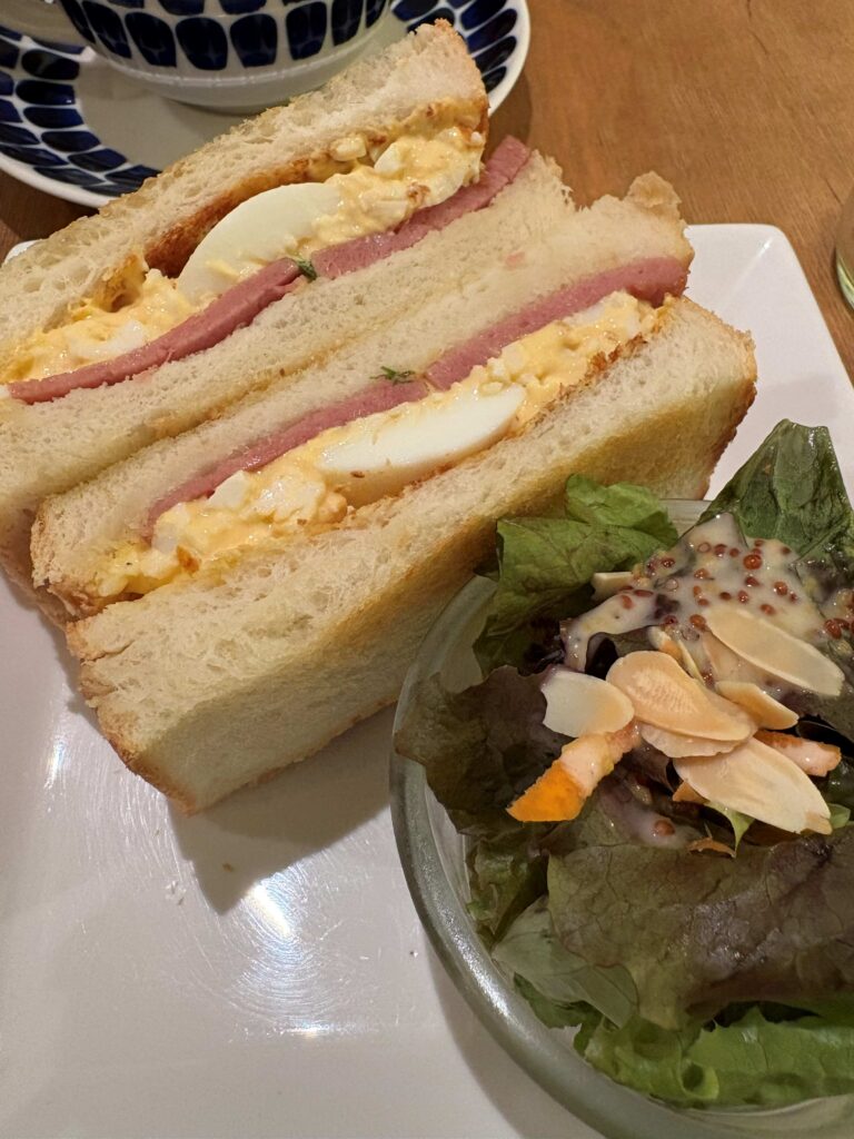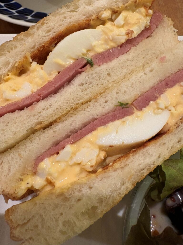 「スパムとたまごのホットサンド」はサクサクトーストにたっぷりのふわふわたまご、スパムの塩味がたまりませんね。