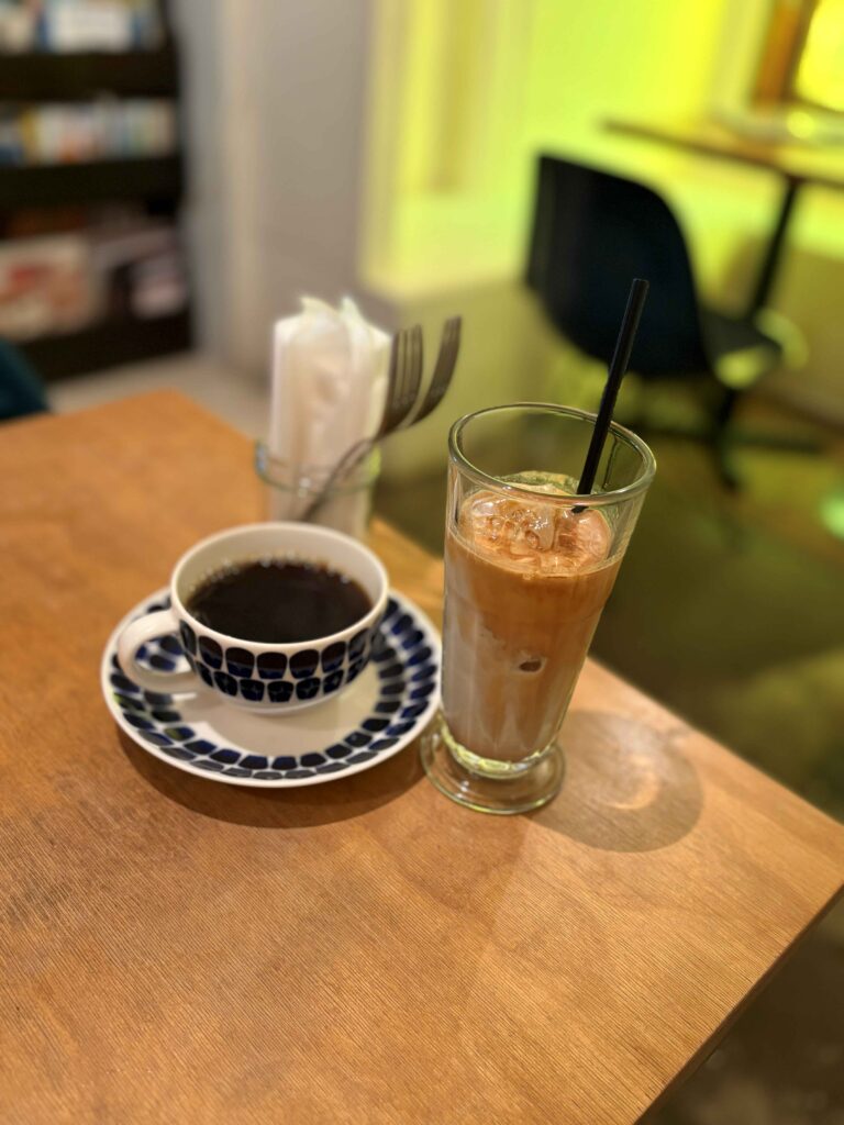 一緒に味わうコーヒー、僕は中深煎りの「旅のブレンド」と妻はいつもの「アメリカーノ」を苦みのお豆で。