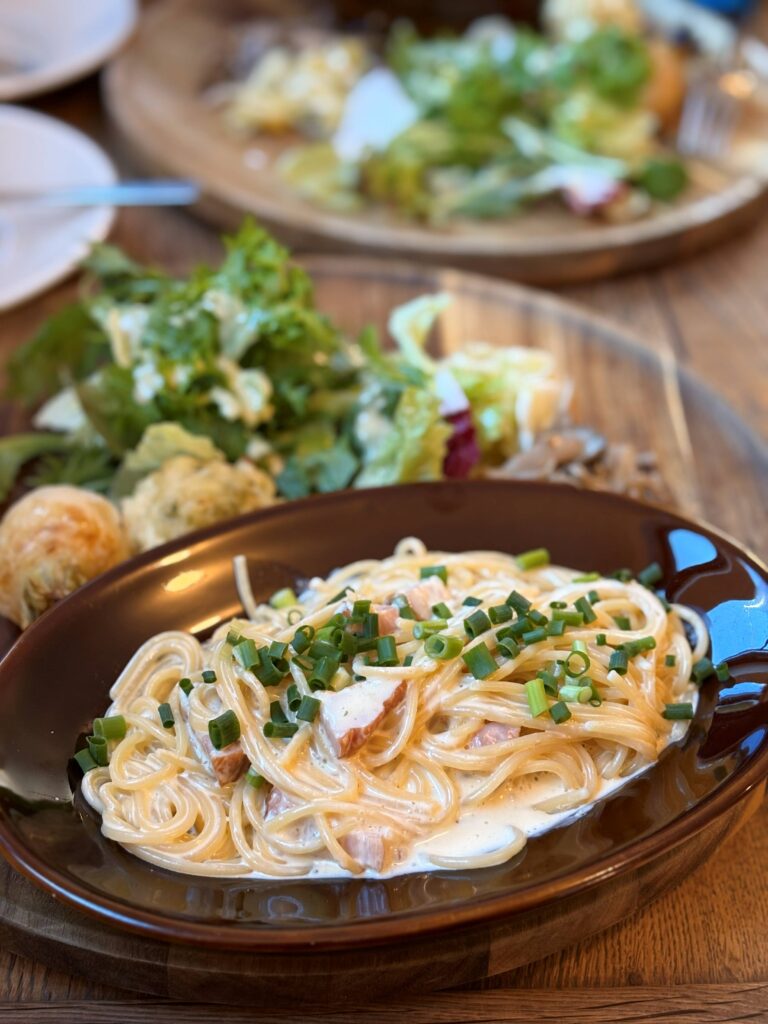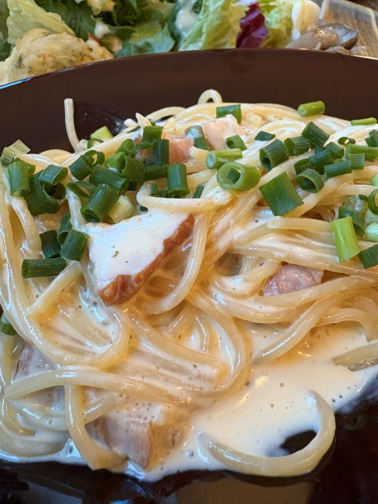 もっちりパスタにベーコンとクリームがたまりません。