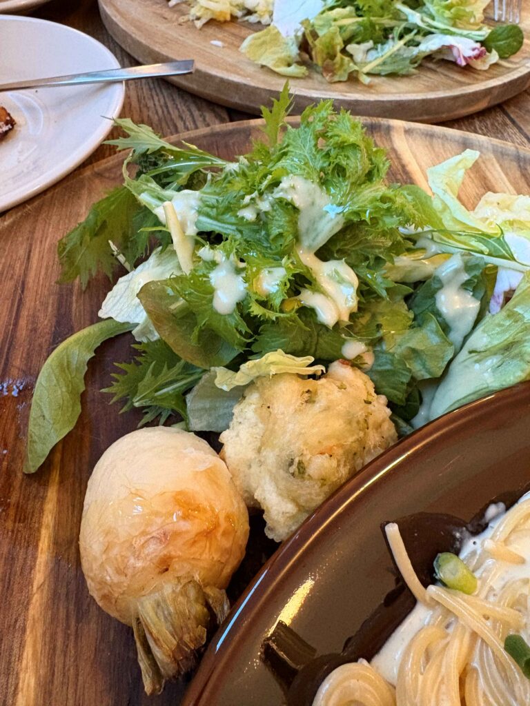 青のり風味の香ばしいゼッポリーニがまたおいしくて、食べ応え充分のワンプレートです。