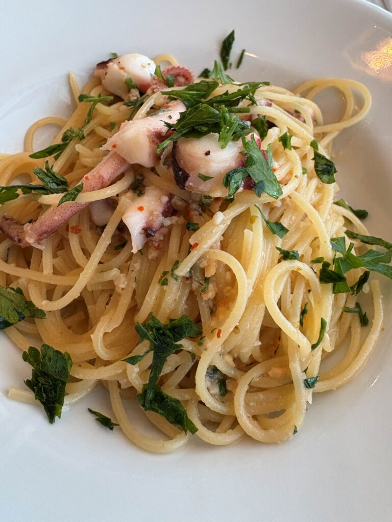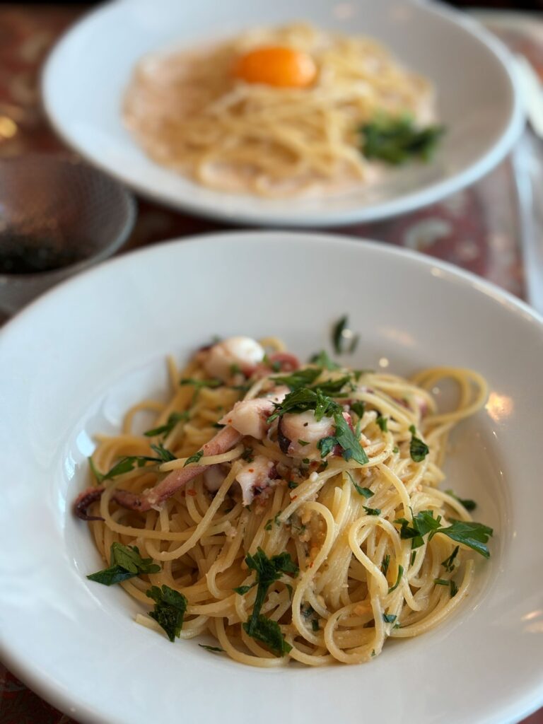 僕は「タコとイカのペペロンチーノ」、たっぷり魚介と香るニンニク、感じる旨み。