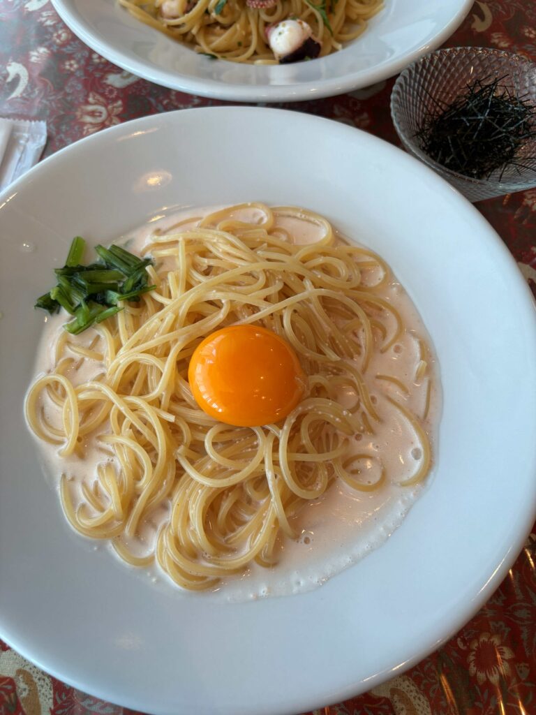 僕は「柚子胡椒風味の和風カルボナーラ」。