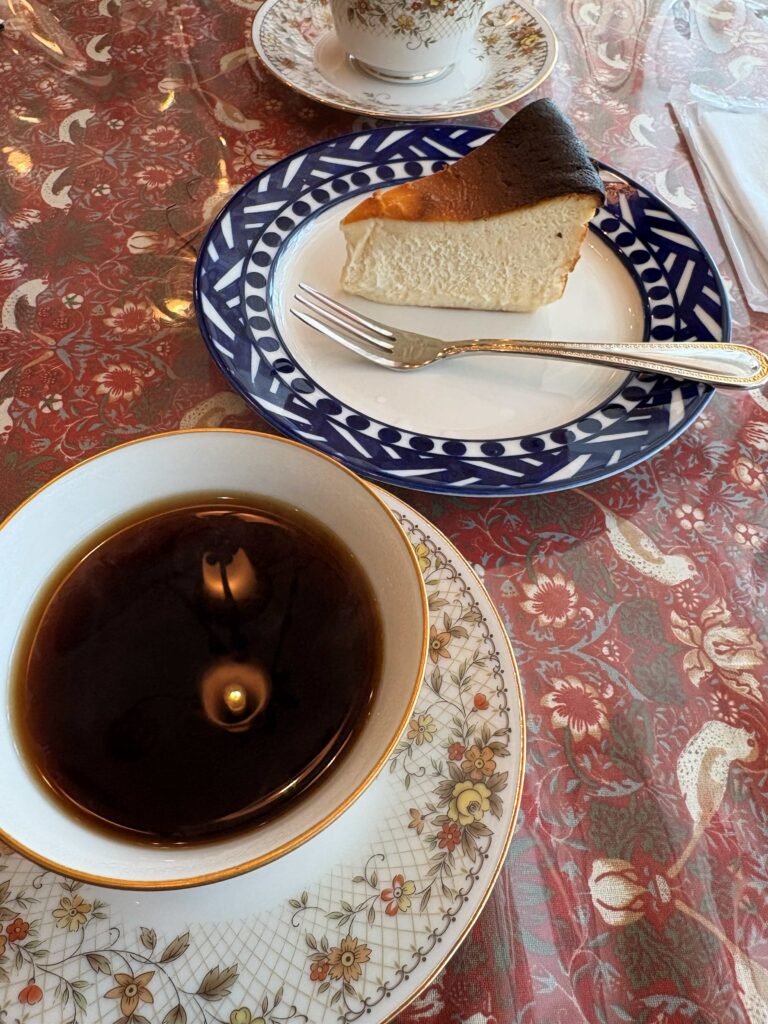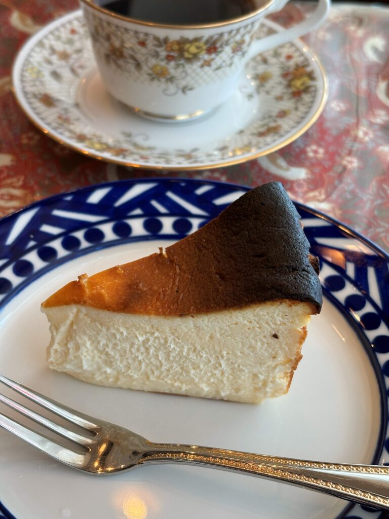食後にはコク深い「ドリップコーヒー」と濃厚な「バスクチーズケーキ」で、ゆったりまったりと良い時間です。年の瀬の御成町を眺めながらのんびりと。