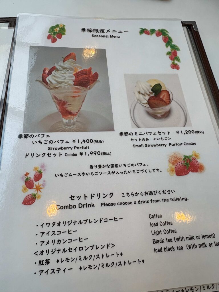 妻はこの時期限定の「いちごのミニパフェセット」。