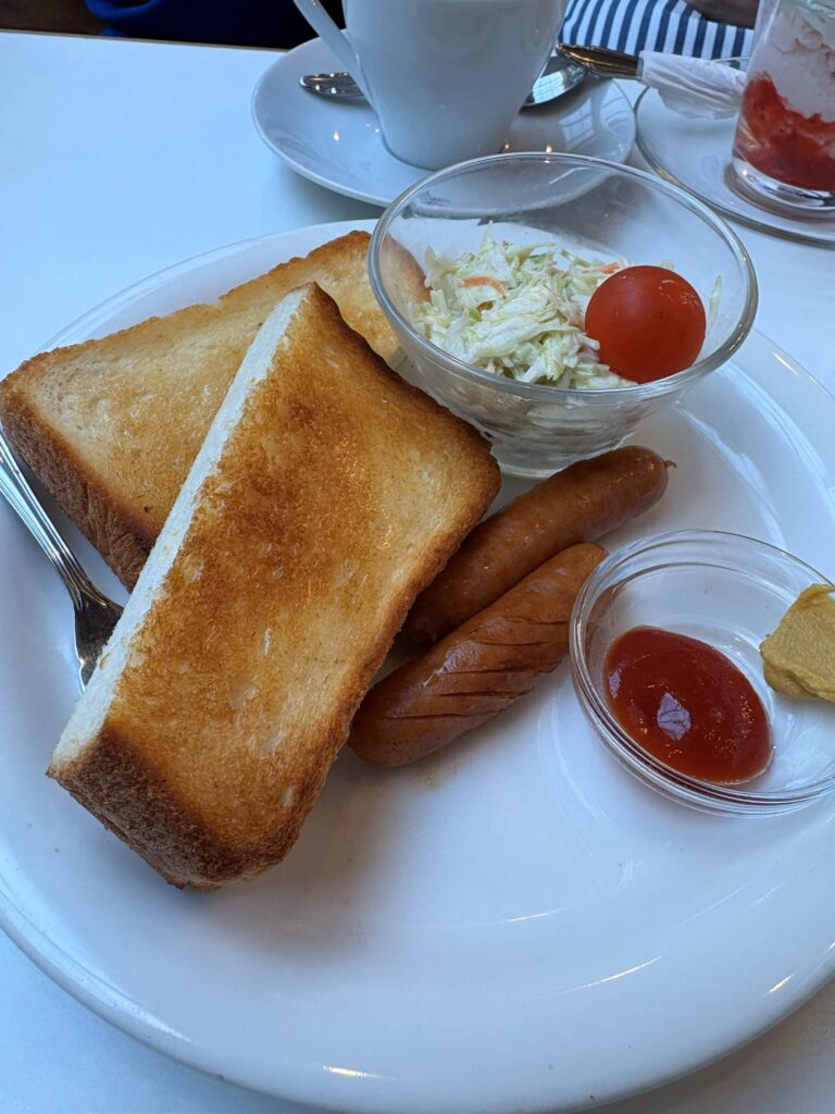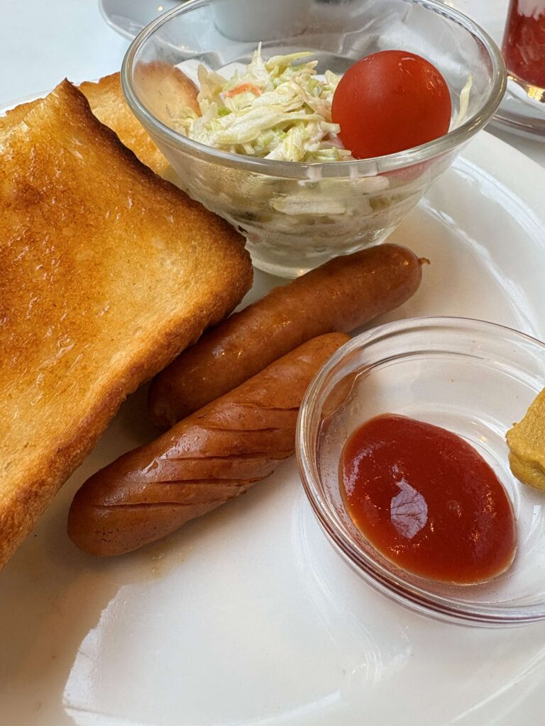 かわいいウィンナーも良いですね。ケチャップとマスタードをつけてパクリと。