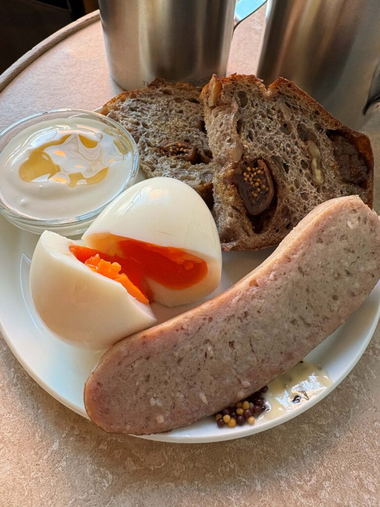 むちむちしたソーセージにはマスタード、はちみつのかかったヨーグルトもまた嬉しいですね。