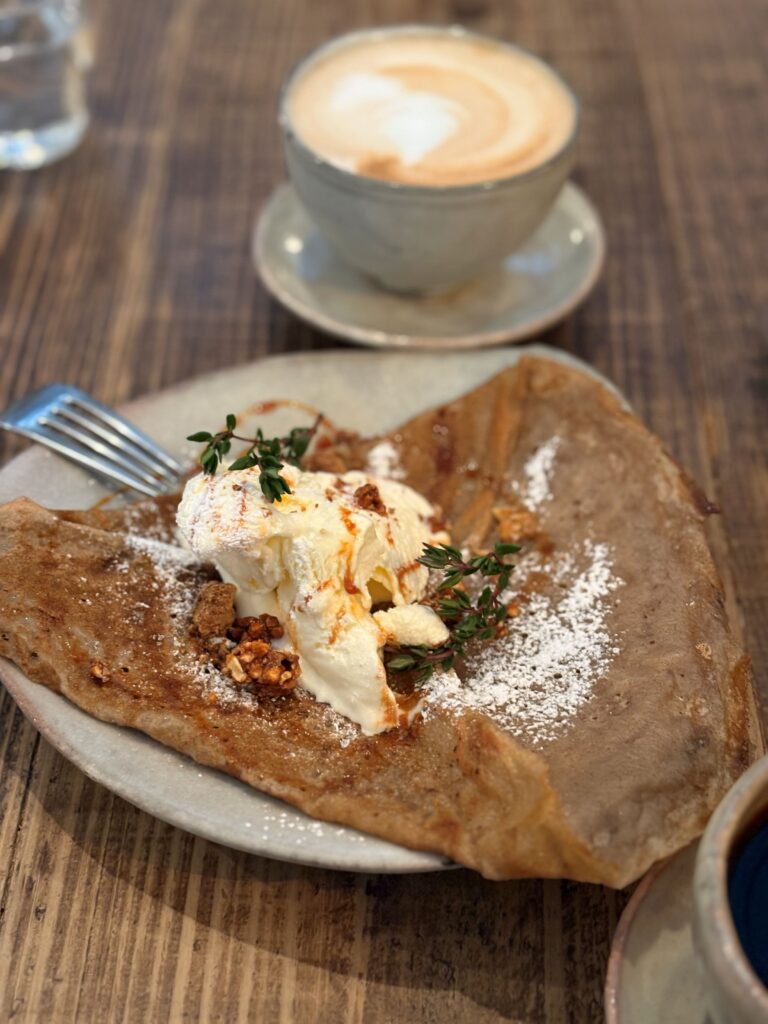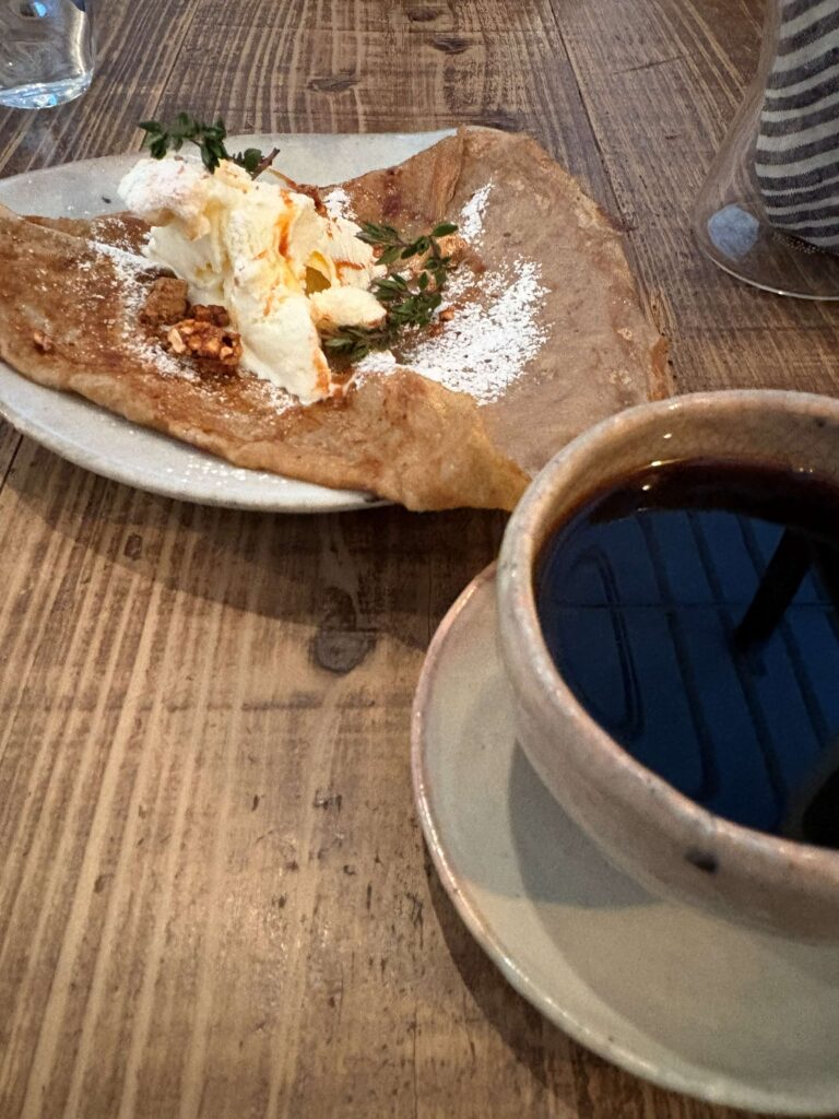 たくさん歩いて、甘いものが食べたかった妻は「そば粉のガレット、塩バターバニラ」。
