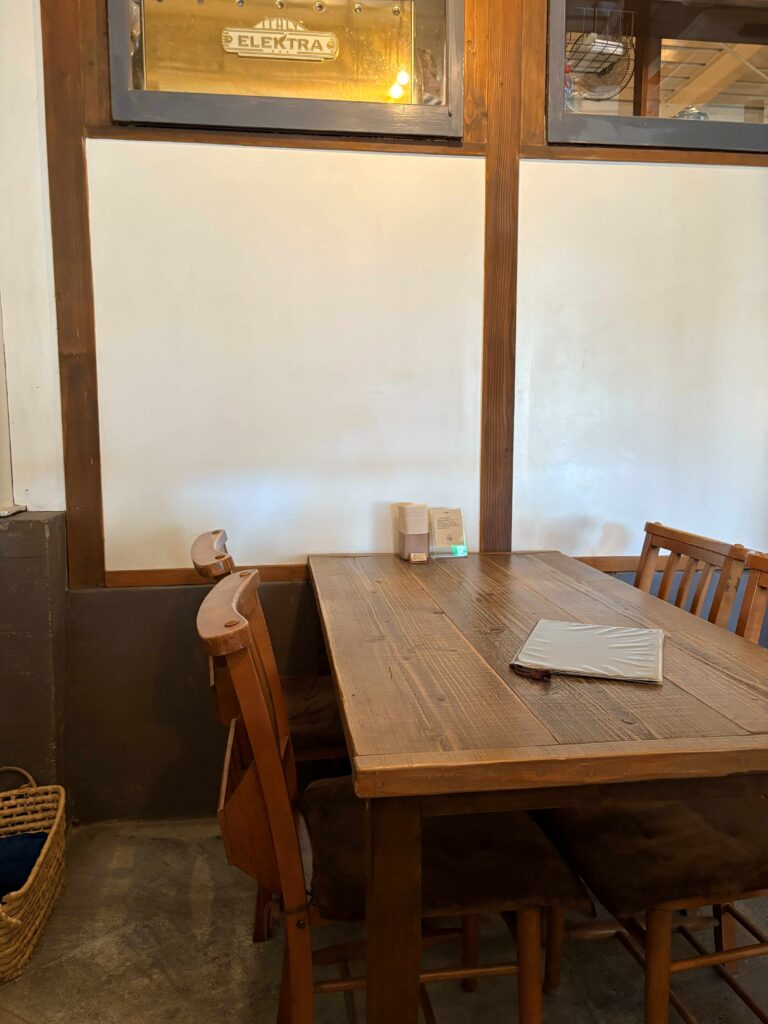 ちょうど空いたお隣のテーブル、机と椅子も美しく、白い壁に映えますね。