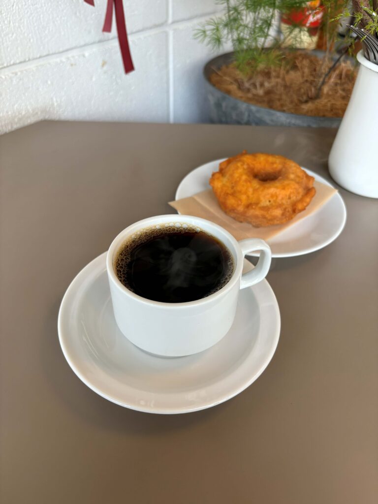 さっくりさくさくの「ドーナツ」とおいしい「ドリップコーヒー」を頂きました。コーヒーがとっても良い香り。