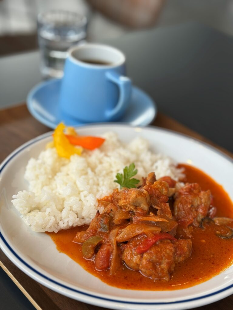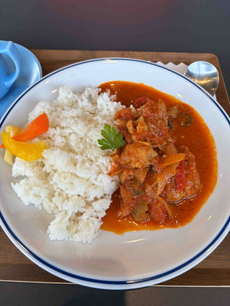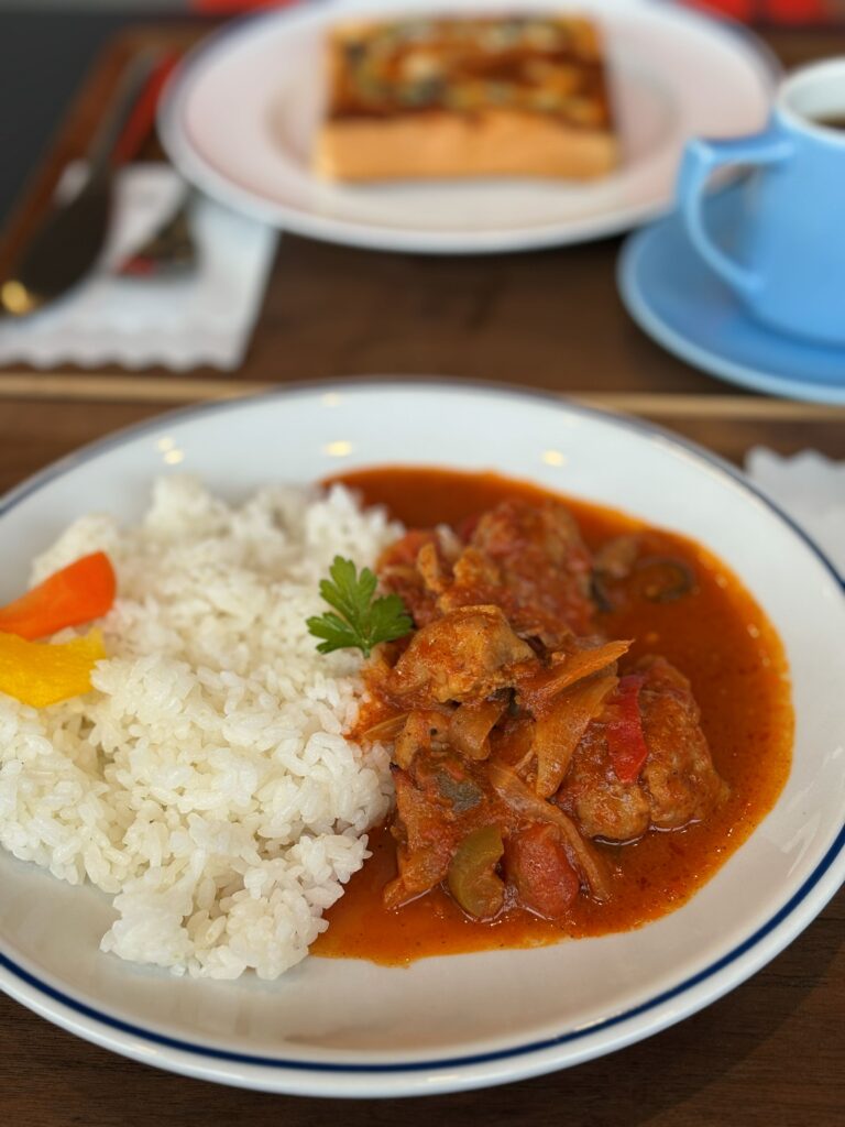 妻は大好きな「チキンの濃厚トマト煮込みのライスプレート」。