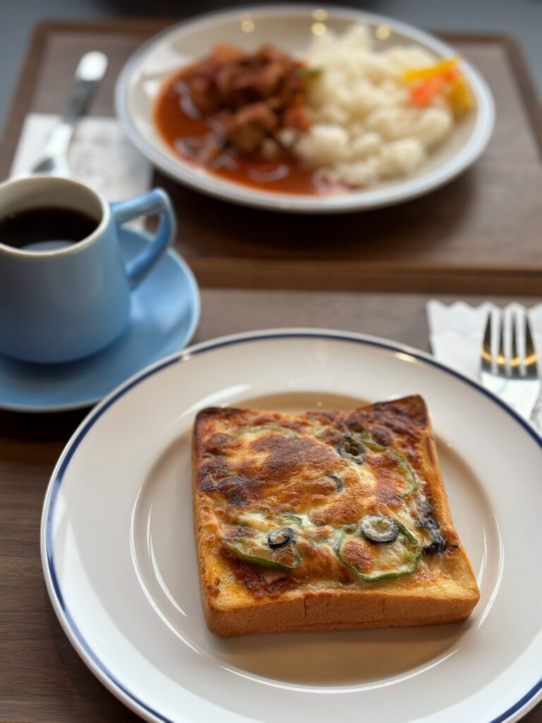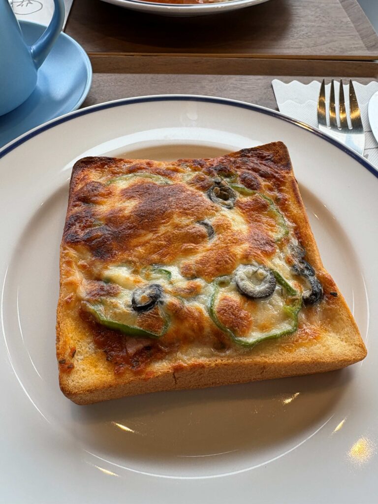 僕はサクサクトーストに熱々のチーズが乗った「ピザトースト」です。