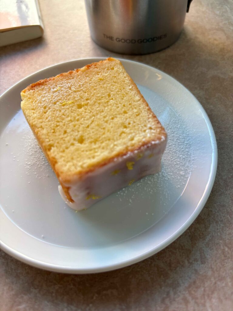 しっとりとした生地がとってもおいしい。周りのレモンのアイシングがサリサリとして、たまりません。