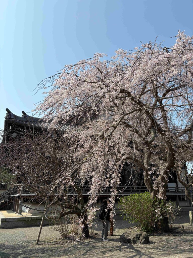 そこから線路を渡り、立派な総門の先、仏殿の手前にもまた、見事な桜でした。