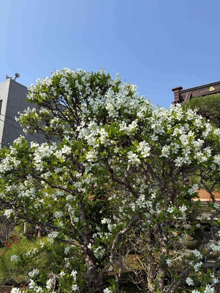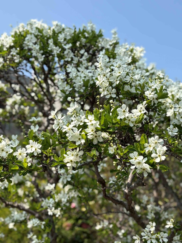 背の高い木の上まで白い可憐な花がびっしりと。なんとも美しい姿です。