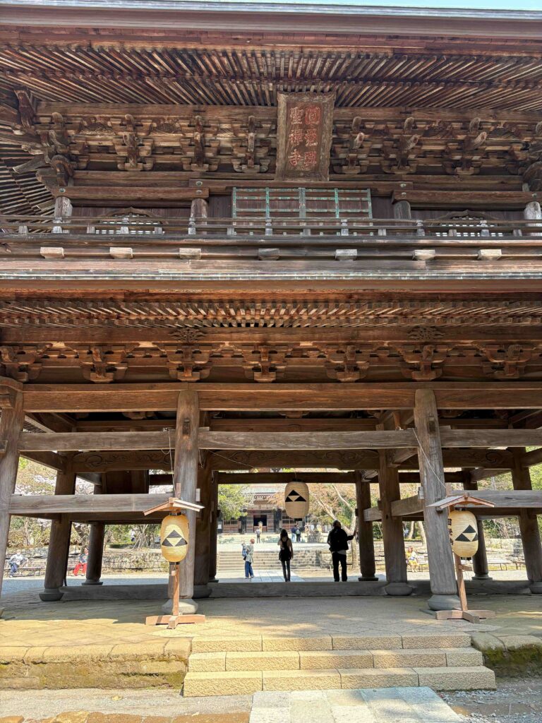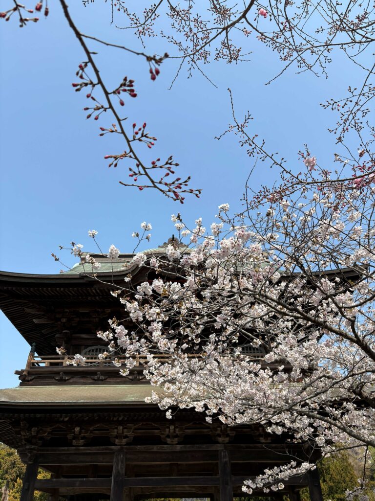 参道を抜けた先の歴史ある荘厳な三門と桜がまた良いコントラストです。