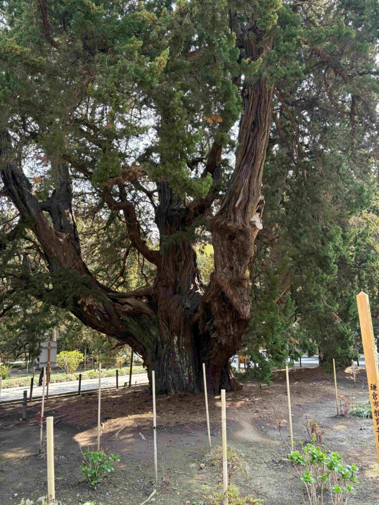 大きくて立派な柏槇(びゃくしん)の木は「かながわの名木百選」、そして「鎌倉市指定保存樹木」です。威厳があるなぁ~。