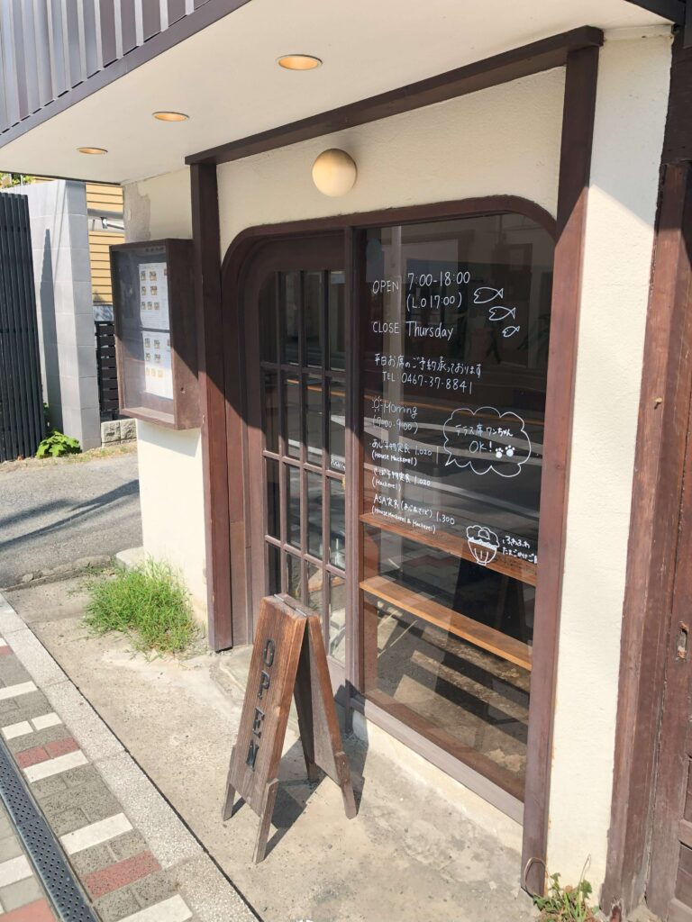 そんな良いお天気の朝、日差しが照り付けて暑いけれど、おいしい朝ごはんを頂きに由比ガ浜大通りの「ヨリドコロ」さんへ。