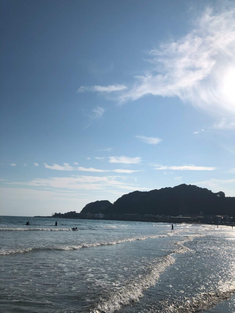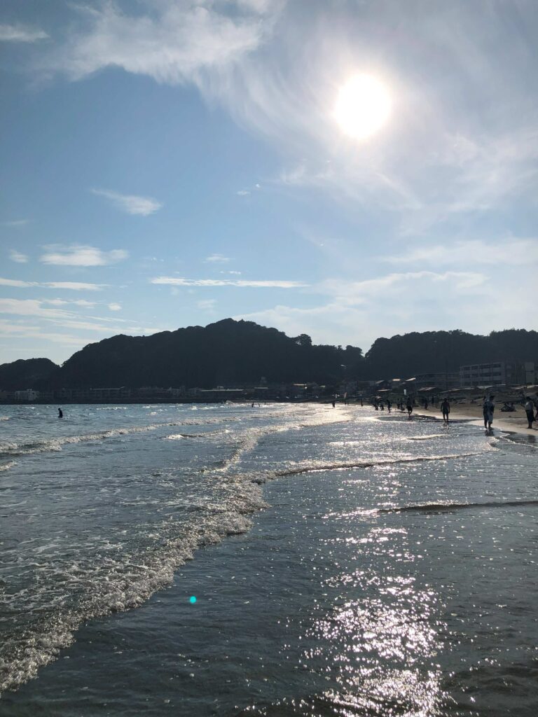 ロミユニさんの後はのんびり歩いて海に行く。「由比ガ浜」。