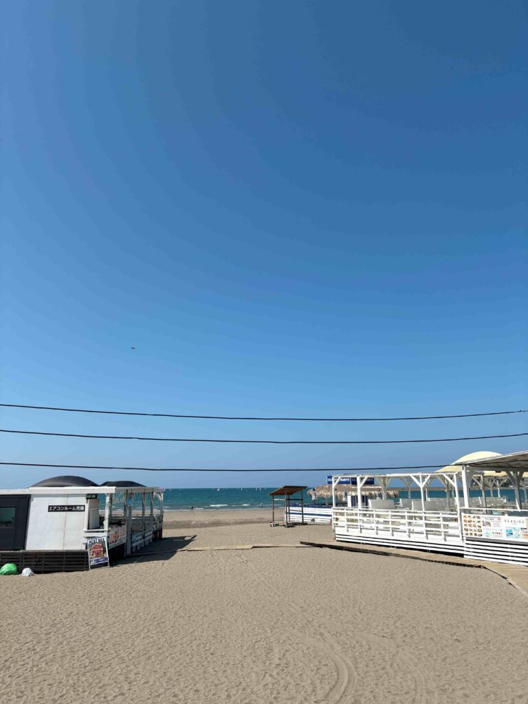 滑川の河口付近から海岸に下りたところにある海の家もちょっと寂しそう。