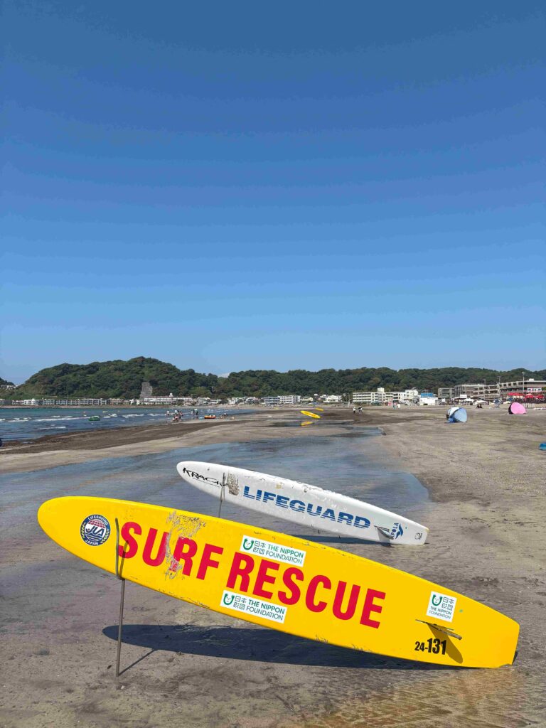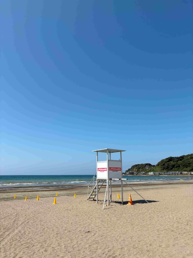 少し先のサーフボード、ライフガードさんの監視塔もちょっと寂しそうでした。