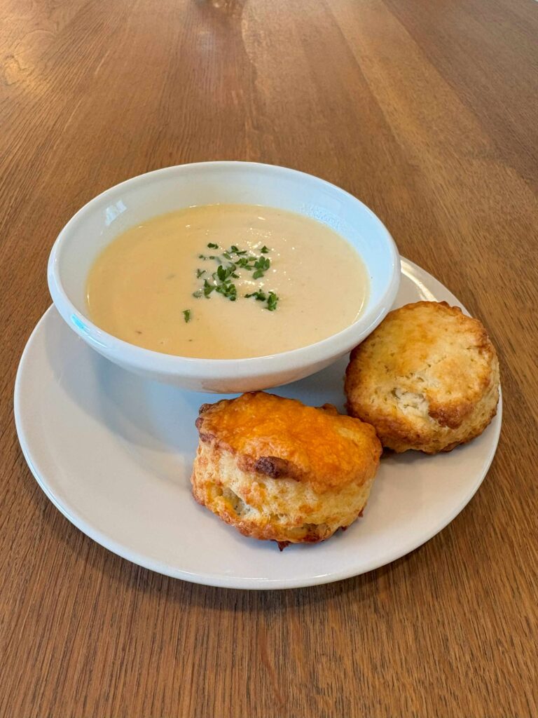 そしてさくさくで香ばしい「ビスケット」、すごく味わい深い。少しスープに付けて頂きました。