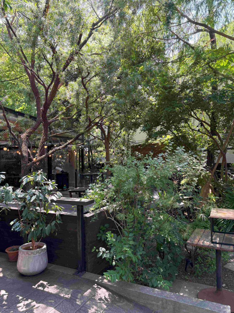 ここから見える木漏れ日の差すテラス席も良い感じ。