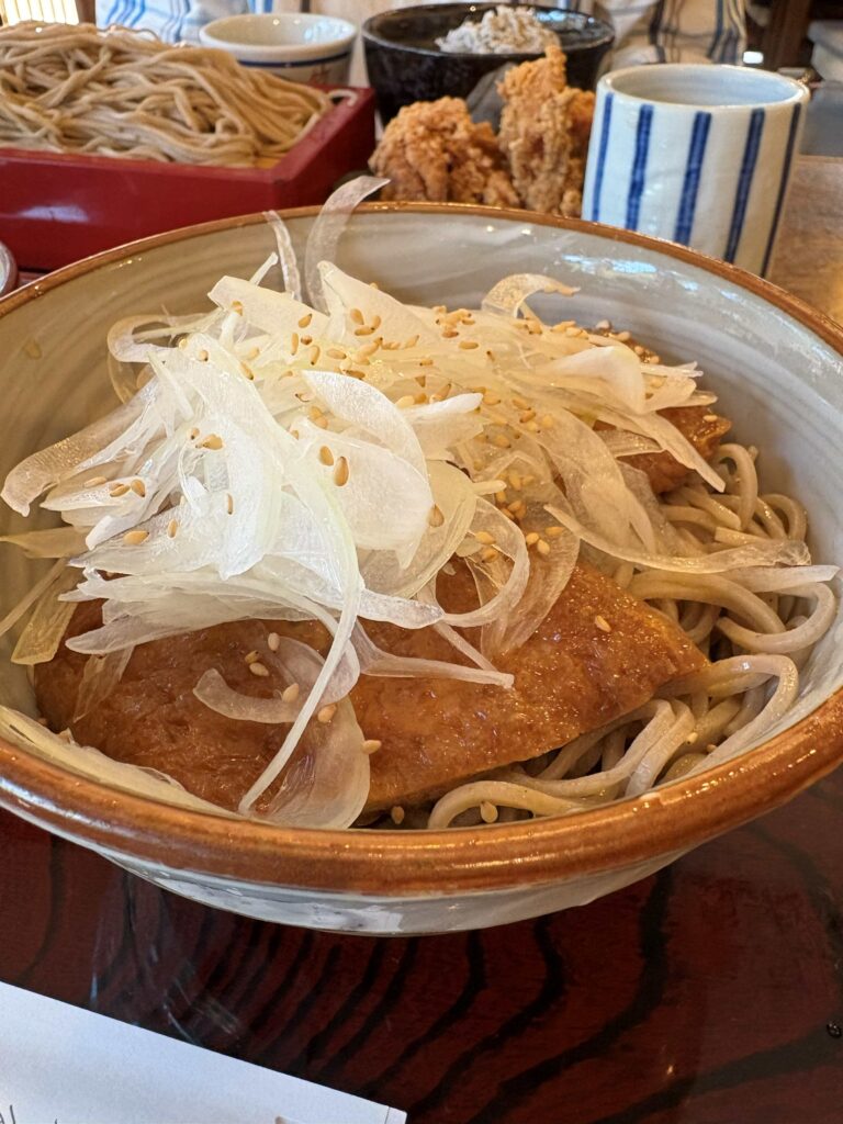 おいしいお蕎麦の上には、でっかくて優しい甘さが染みたきつねさん。
