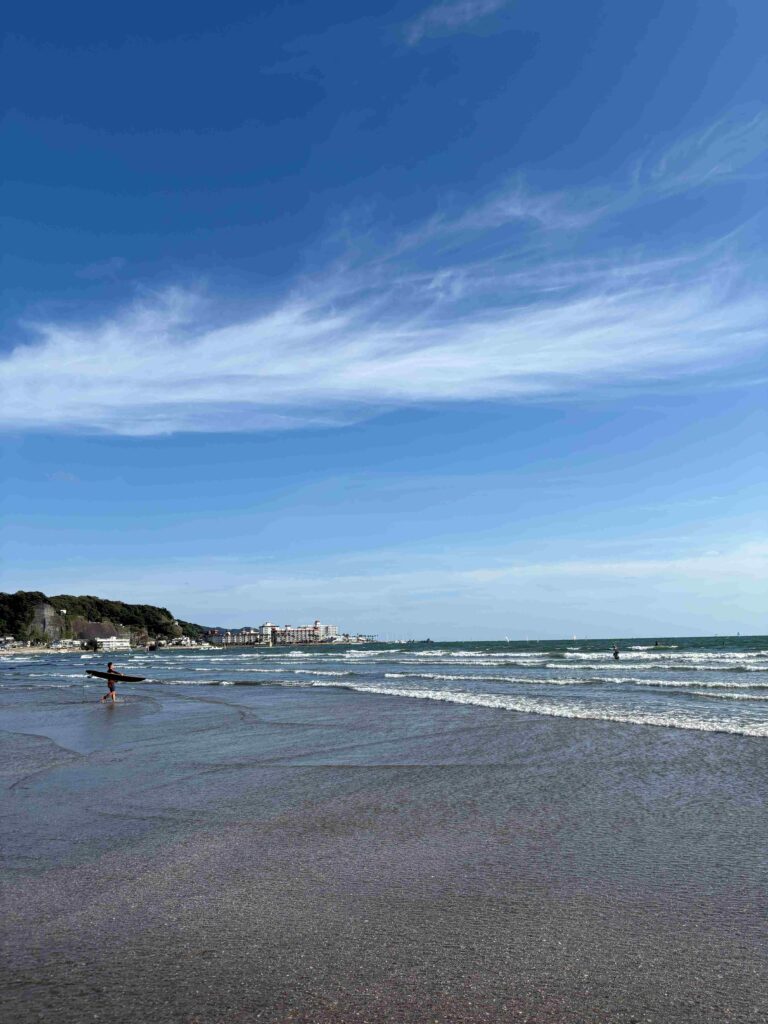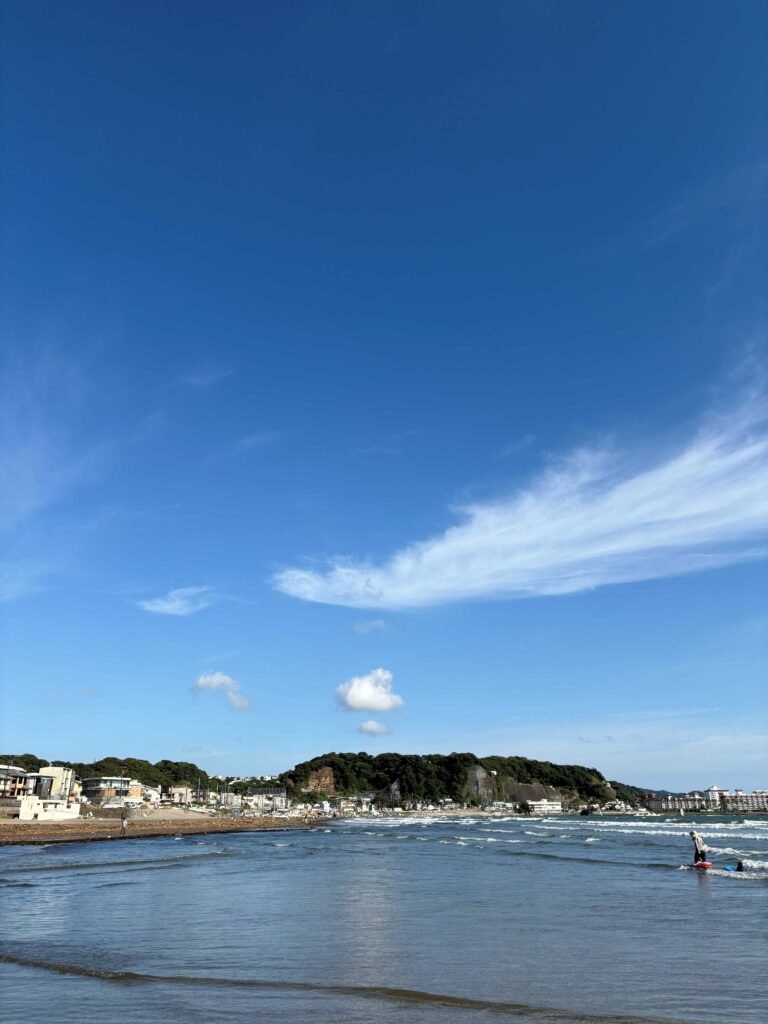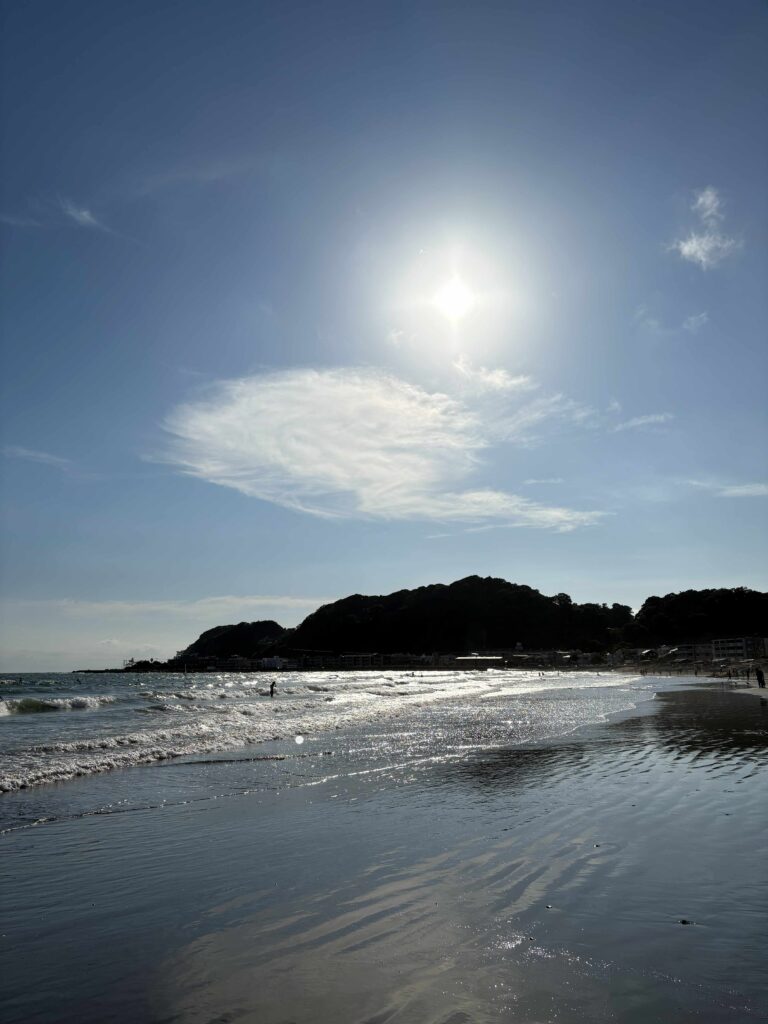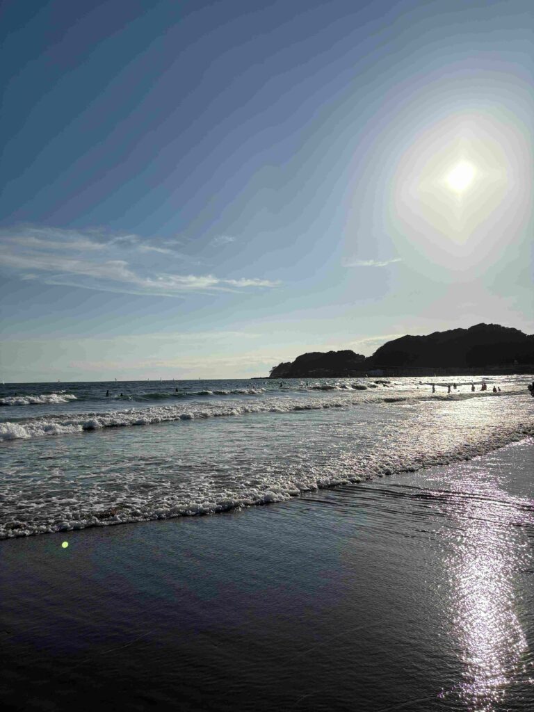 空は青空、逗子方面は真っ青、稲村ガ崎方面は太陽がまぶしい~