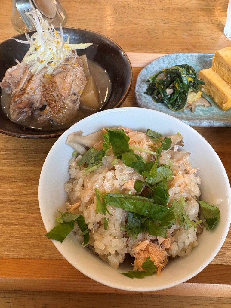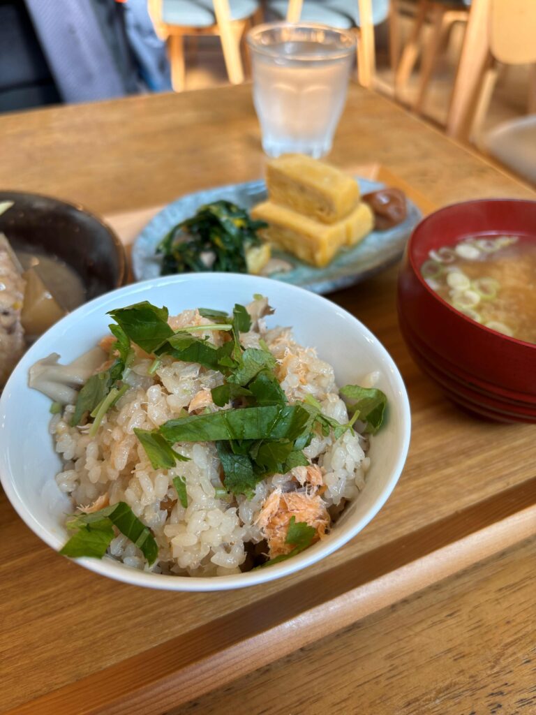 鮭のほぐした身がおいしくて、それでいて滋味深く、体に沁みる味わい。