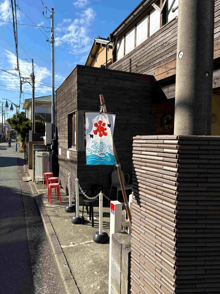 いつもお待ちのお客さまがいらっしゃる人気店です。店頭に記名簿がありますので、そちらにお名前を記入してお待ちください。お店の前に待合エリアがありますよ。