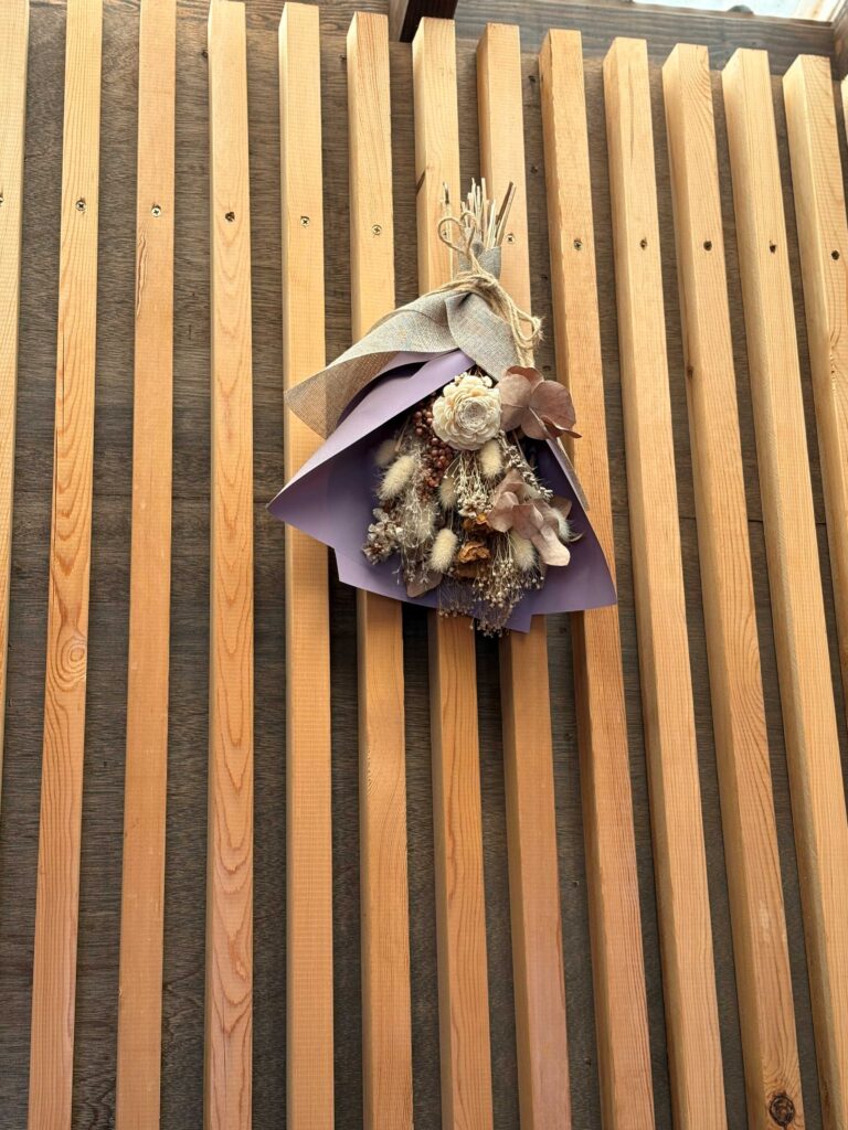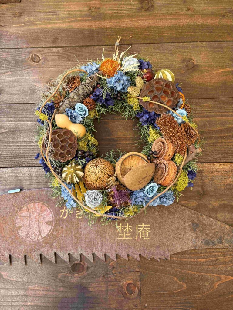 いつもお花がたくさん飾られている埜庵さん、今日も素敵なブーケやリースが飾られていました。