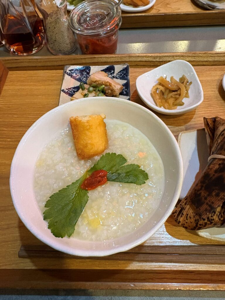 「ねぎ鶏」や「ザーサイ」など選べる小鉢はどれもおいしくて、お粥がまた一段おいしくなりますね。するっと完食、ごちそうさまでした♪お腹いっぱい(笑)。