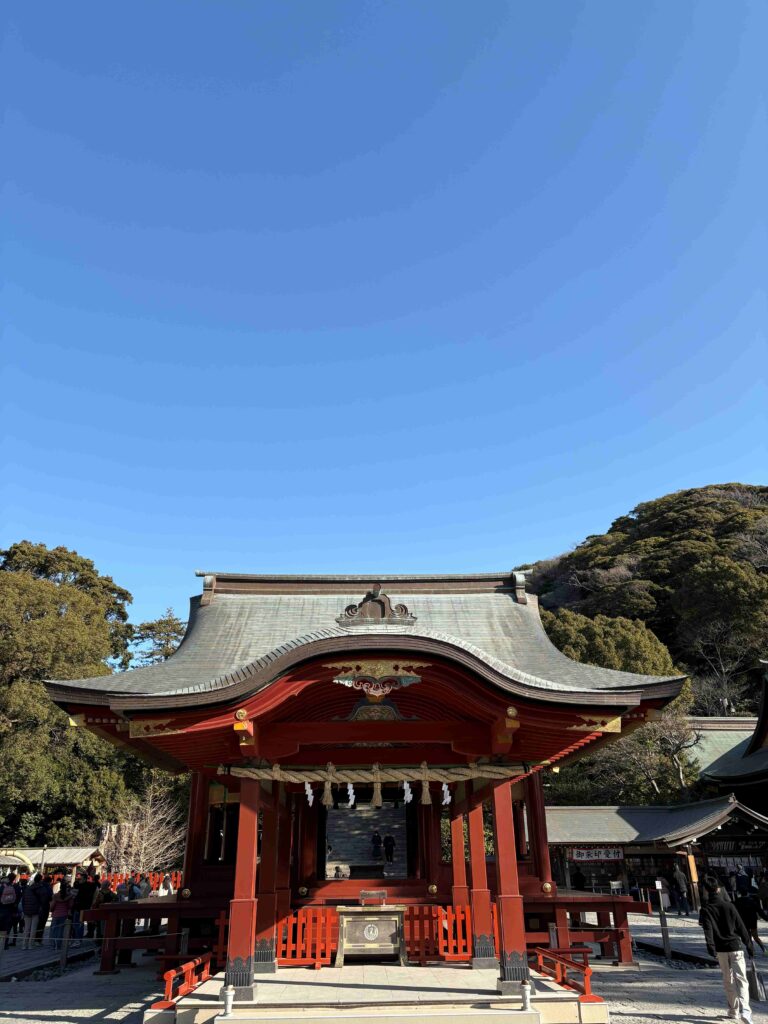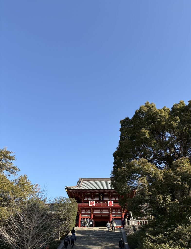 大きな赤い鳥居をくぐって「鶴岡八幡宮」へ。