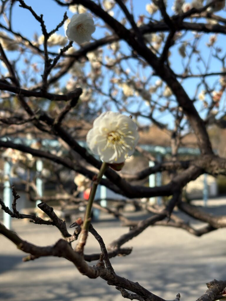 ここの梅は白、しゃんとしてて見惚れる美しさ。
