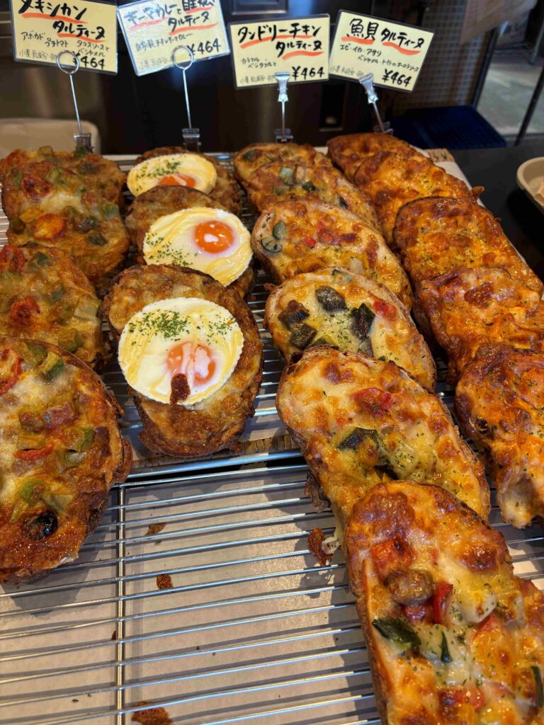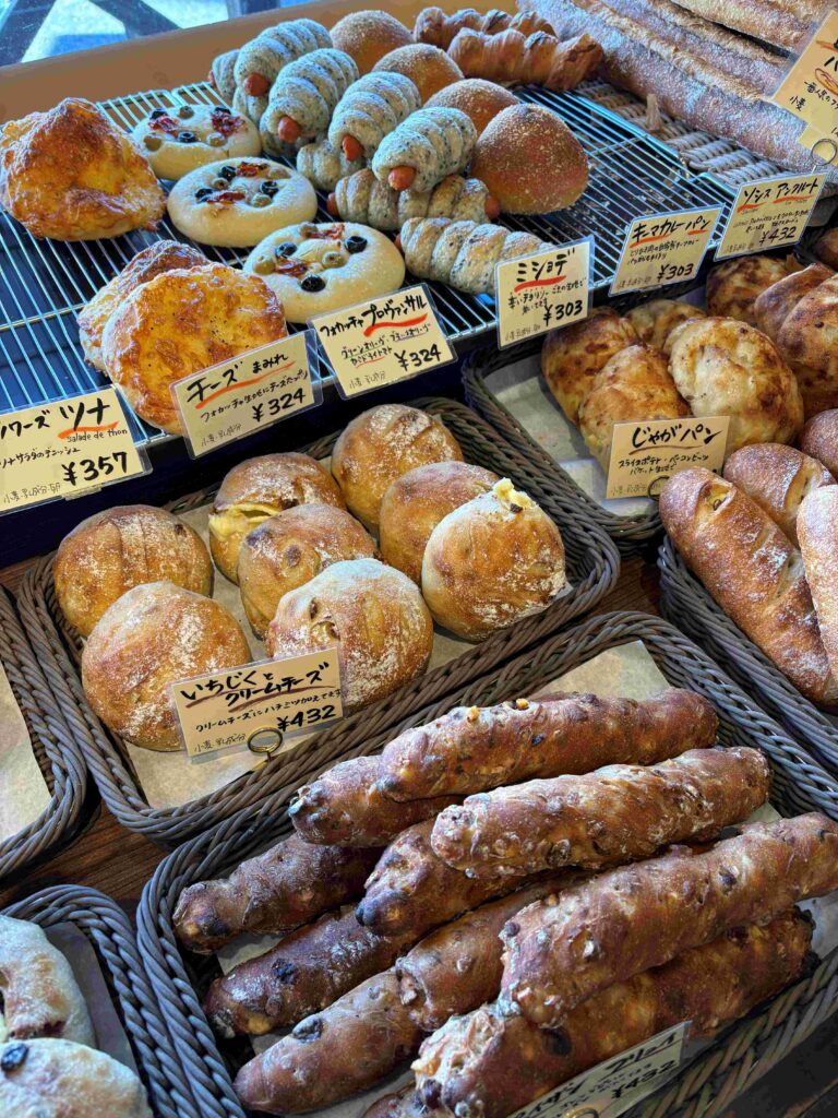 果物がふんだんに乗ったデニッシュやウインナーパンにカレーパン、日常使いの素朴なパンに目玉焼きなどがたっぷり乗った総菜系のパンまで、もうびっしり。