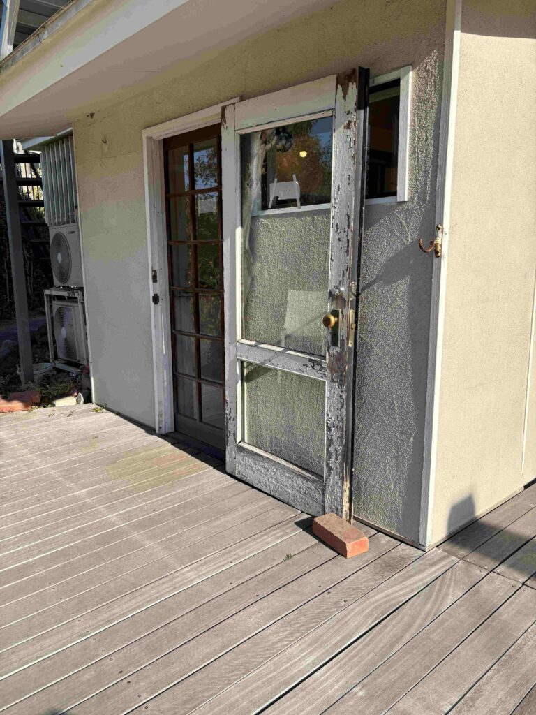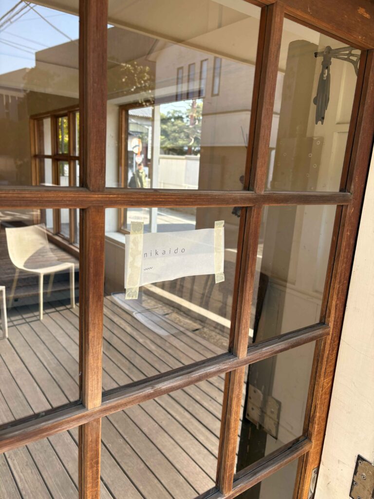 古い建物を活用したシンプルで素敵な設えのお店、入口の建具が味わい深くて良いですね。