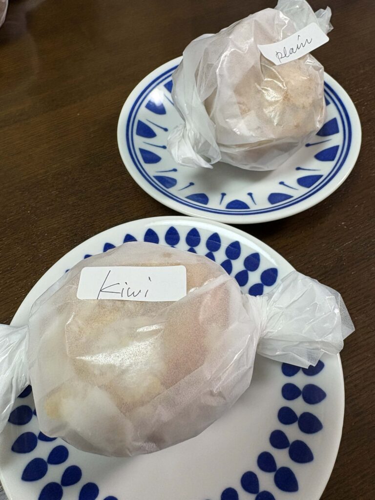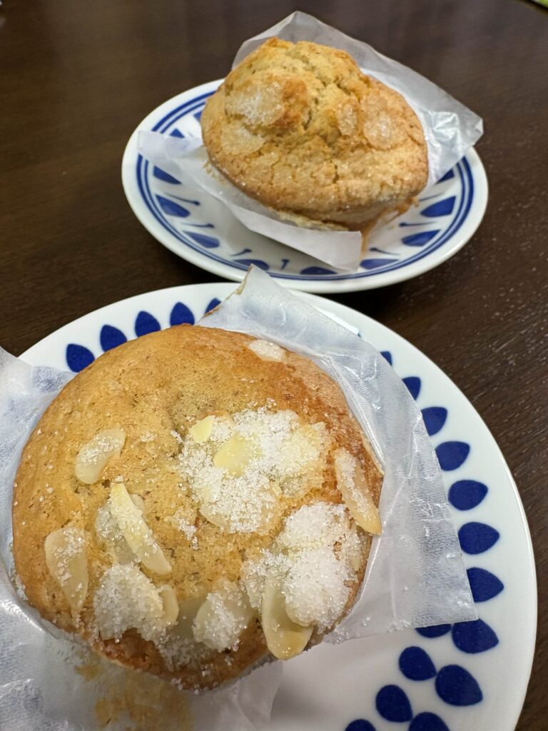 夜、夕食の後に頂きましたが、ふわふわでさくさく、キウイの甘さとクリームチーズの酸味がとっても良く合って、すごくおいしかった。プレーンもまた素朴で味わい深いマフインでした。