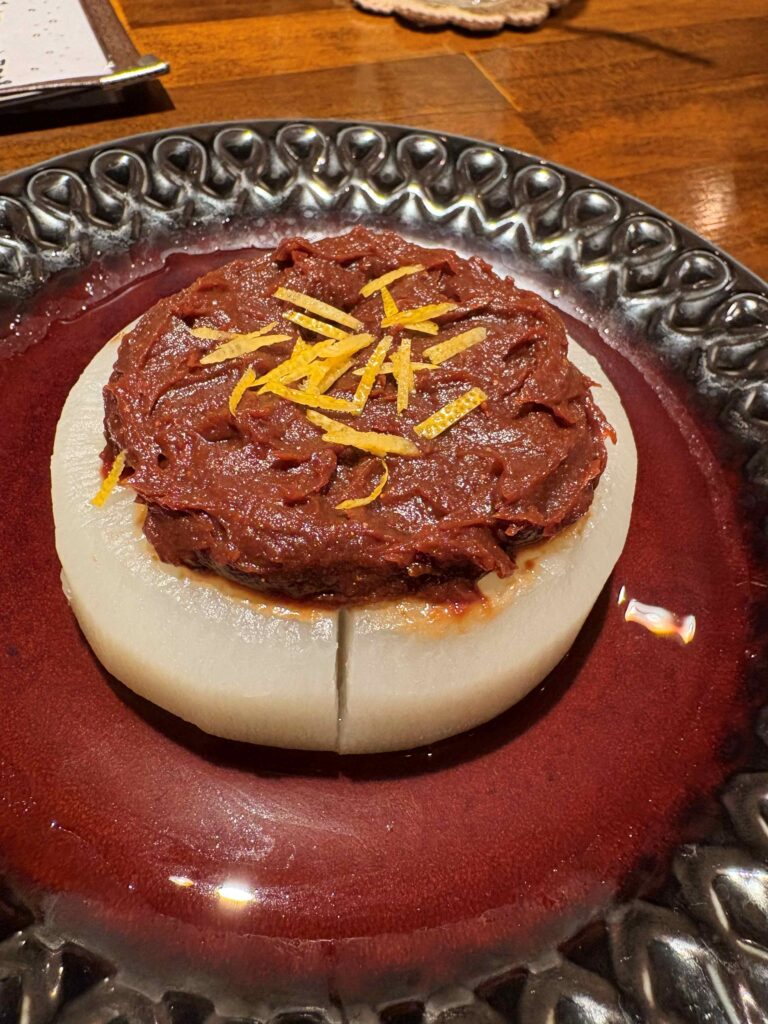 大根の上にはたっぷりと濃厚でまろやかなお味噌、その上にはその場で削って散らしてくれる柚子。
