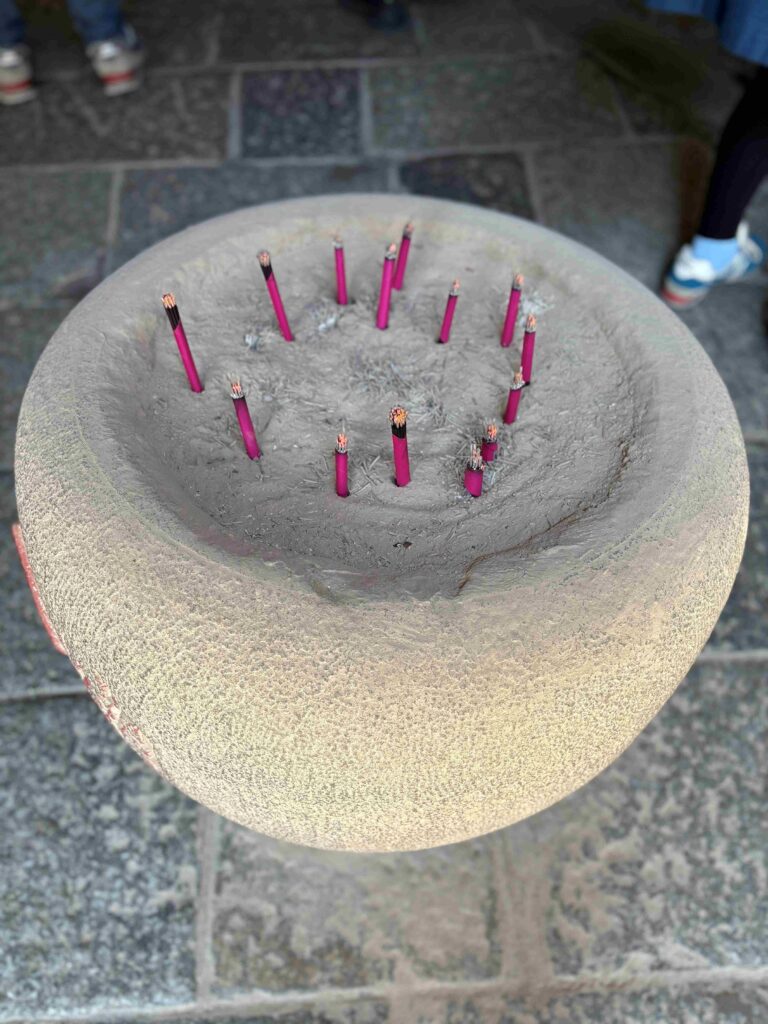 途中、お線香と蝋燭、ざるをいただいてそれぞれお納めさせて頂きました。