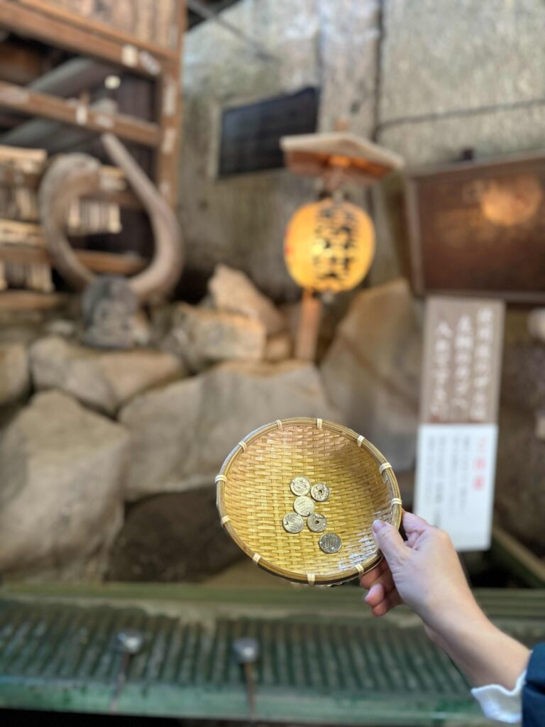 そして銭洗弁財天さんのメインイベント、ざるにお金をのせて奥の宮でさわさわ〜っと。