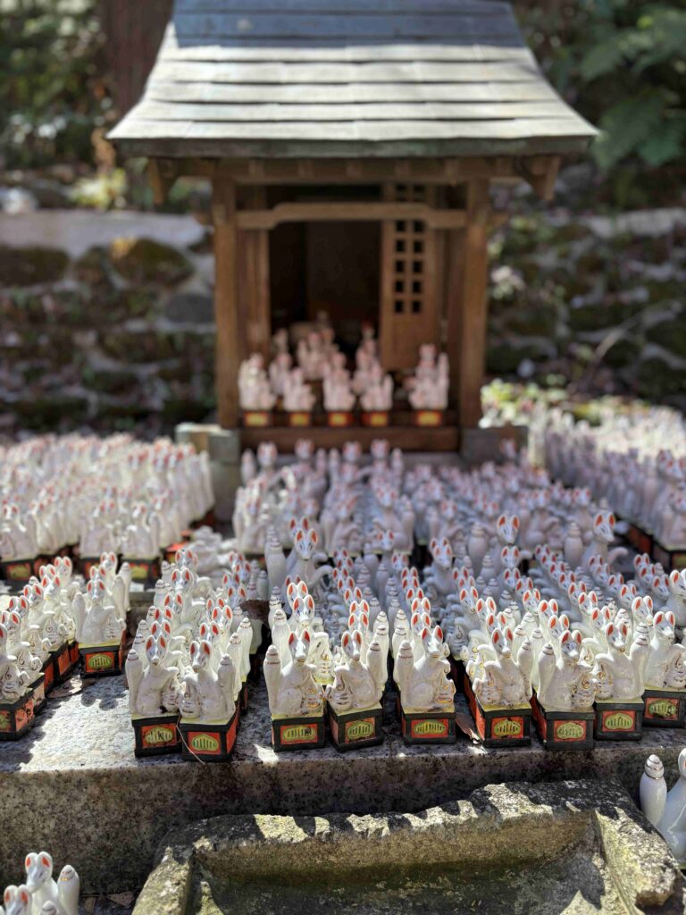 境内にはたくさんのお狐様、いたるところに並んでいます。